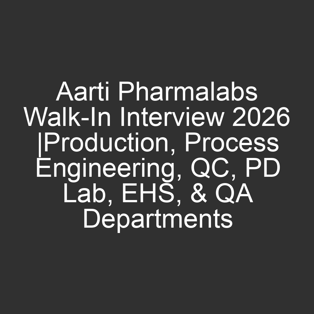Aarti Pharmalabs is expanding its high-performance team at the Atali location. This is a premier opportunity for experts in CDMO, API, and multi-product manufacturing to join a rapidly growing pharmaceutical leader. Attend the walk-in, excel in the interview, and walk away with your formal job offer letter on the same day!