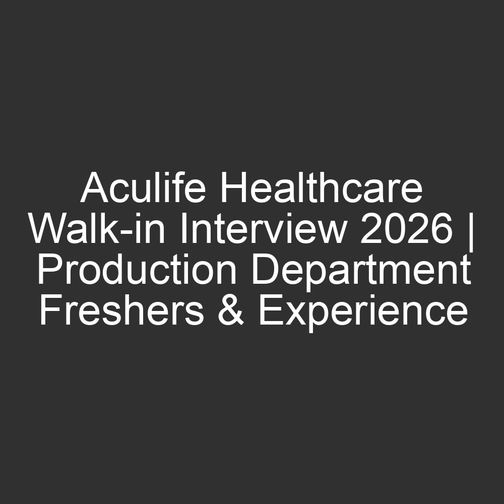Are you a Pharmacy or Science graduate looking to start your career with a prestigious organization? Aculife Healthcare Pvt Ltd, a proud member of the Nirma Group, is inviting talented individuals for a mega Walk-in Interview. Known for its world-class manufacturing standards in parenteral products, Aculife offers a dynamic environment for professional growth. Whether you are a Fresher or have experience in sterile manufacturing, this is your chance to join a global healthcare leader.