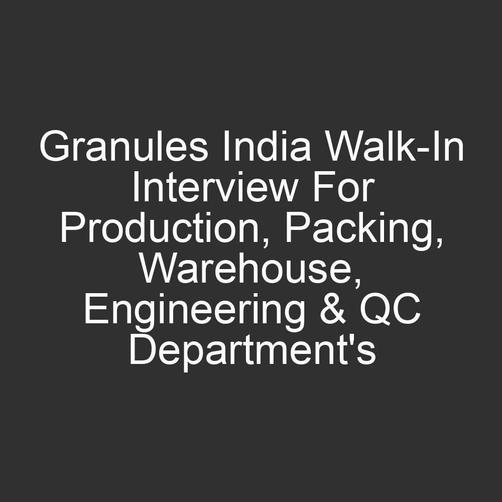 All Jobs, All over India Jobs1 day agoGranules India Walk-In Interview For Production, Packing, Warehouse, Engineering & QC Department’s