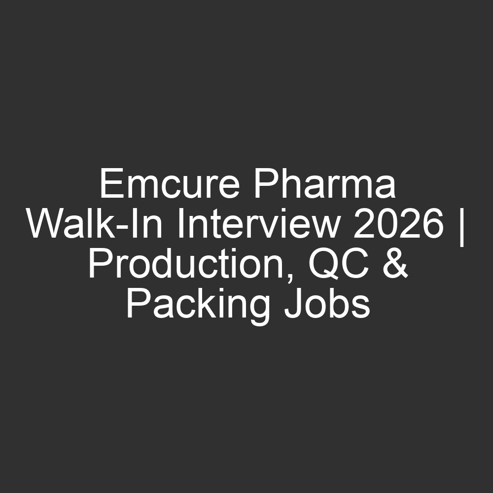 All Jobs, All over India Jobs18 hours agoEmcure Pharma Walk-In Interview 2026 | Production, QC & Packing Jobs