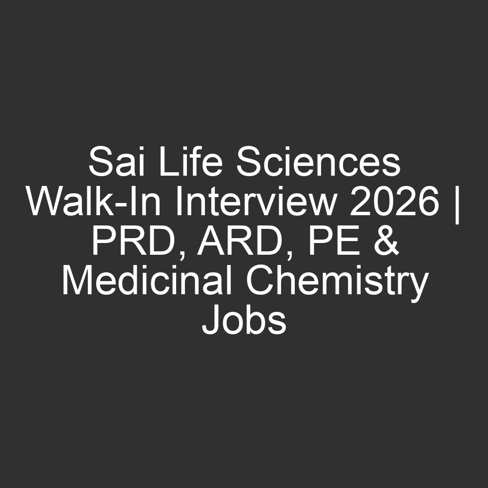All Jobs, All over India Jobs15 hours agoSai Life Sciences Walk-In Interview 2026 | PRD, ARD, PE & Medicinal Chemistry Jobs