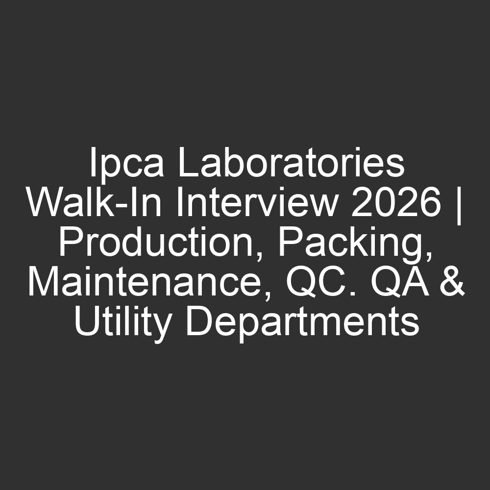 All Jobs, All over India Jobs9 hours agoIpca Laboratories Walk-In Interview 2026 | Production, Packing, Maintenance, QC. QA & Utility Departments