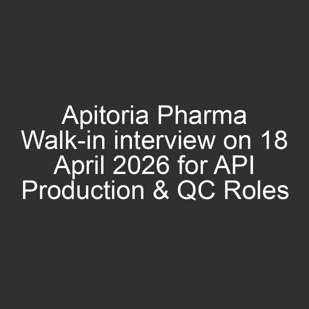 Apitoria Pharma Walk-In Drive: Freshers & Experienced for API Division
