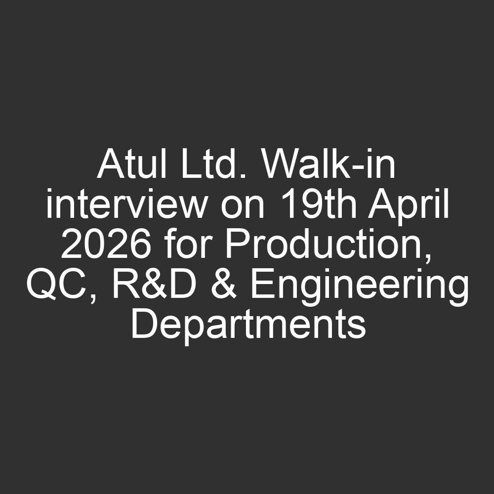 Atul Ltd Walk-In Interview 2026 for Production, QC, R&D & Engineering