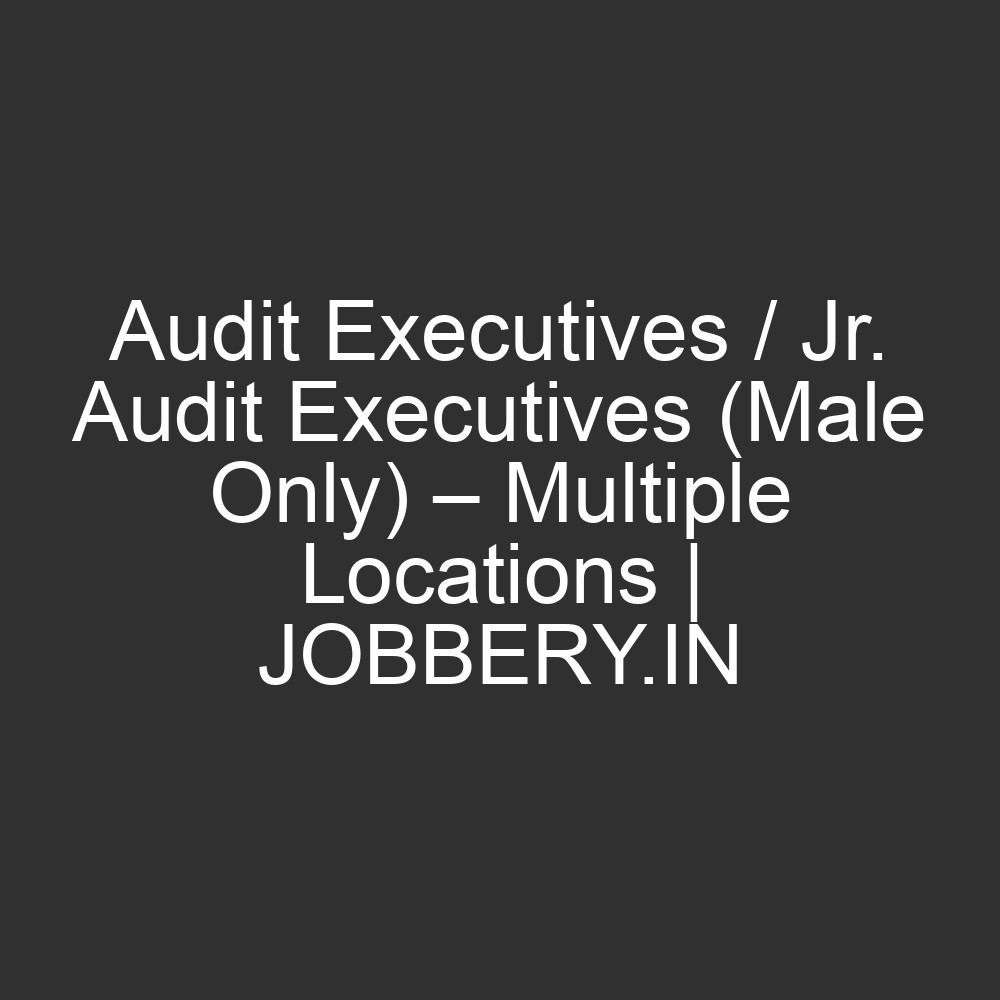 Audit Executives / Jr. Audit Executives (Male Only) – Multiple Locations | JOBBERY.IN