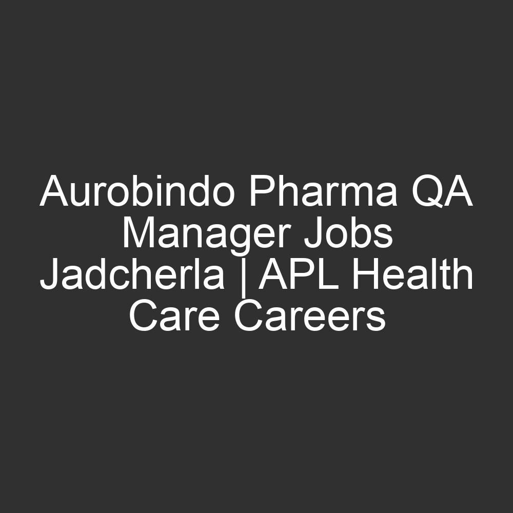 APL Health Care Limited (a subsidiary of Aurobindo Pharma) is seeking experienced Quality Assurance professionals to join their team in Jadcherla. This is an excellent opportunity for seasoned experts with a background in regulatory formulations to advance their careers with a global pharmaceutical giant.