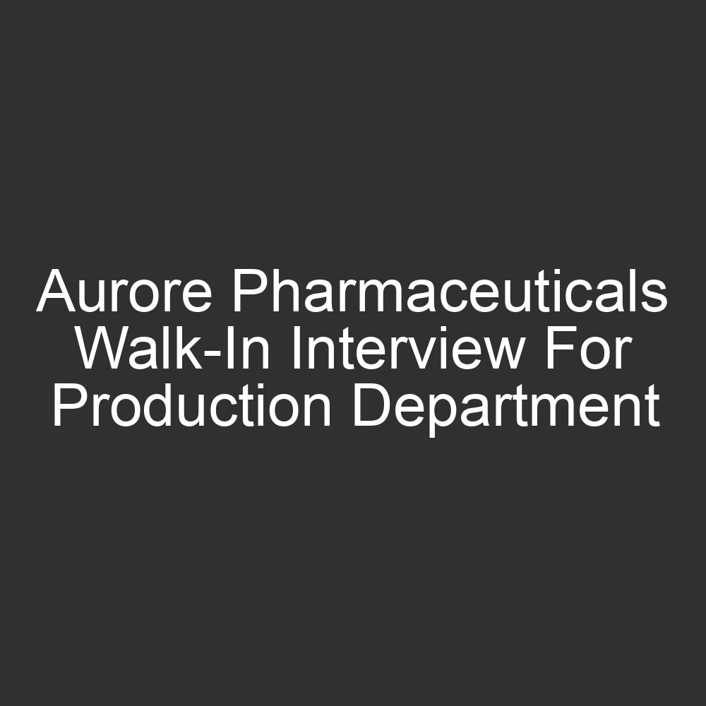 Aurore Pharmaceuticals Careers: Walk-In Interview for API Production