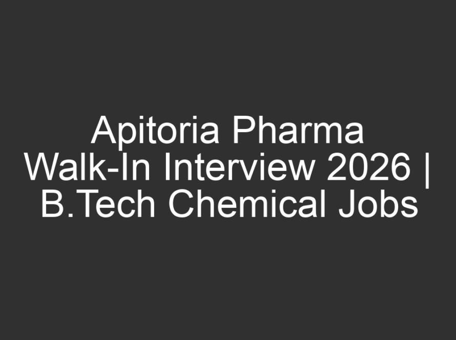 All Jobs, All over India Jobs, Multi National company Jobs4 hours agoApitoria Pharma Walk-In Interview 2026 | B.Tech Chemical Jobs