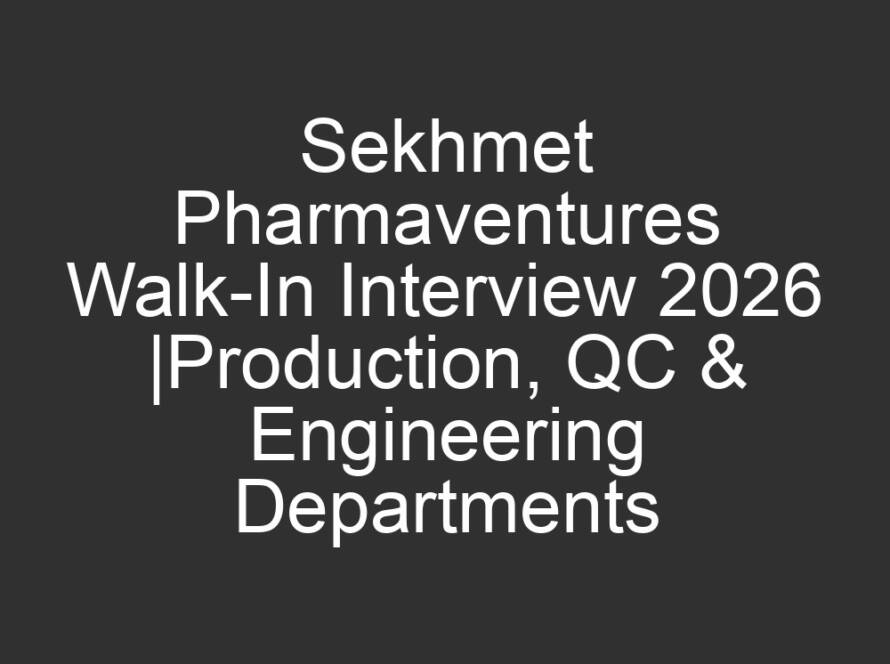 All Jobs, All over India Jobs, Multi National company Jobs4 hours agoSekhmet Pharmaventures Walk-In Interview 2026 |Production, QC & Engineering Departments