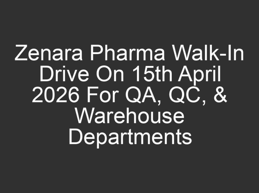 All Jobs, All over India Jobs, Multi National company Jobs11 hours agoZenara Pharma Walk-In Drive On 15th April 2026 For QA, QC, & Warehouse Departments