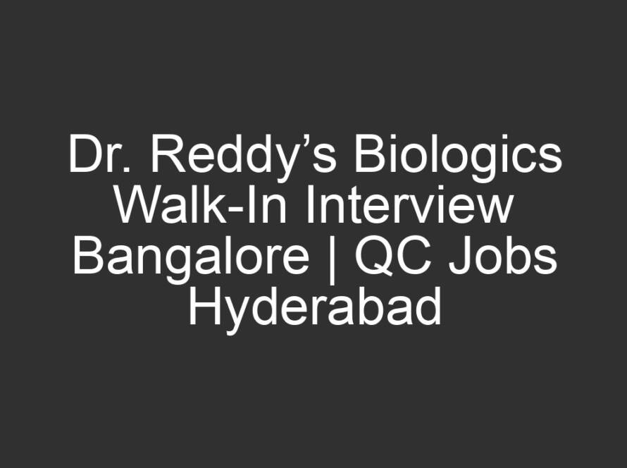 All Jobs, All over India Jobs, Multi National company Jobs8 hours agoDr. Reddy’s Biologics Walk-In Interview Bangalore | QC Jobs Hyderabad