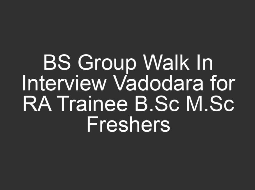 All Jobs, All over India Jobs, Multi National company Jobs5 hours agoBS Group Walk In Interview Vadodara for RA Trainee B.Sc M.Sc Freshers