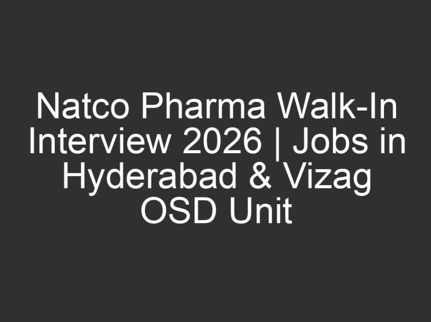All Jobs, All over India Jobs, Multi National company Jobs2 days agoNatco Pharma Walk-In Interview 2026 | Jobs in Hyderabad & Vizag OSD Unit