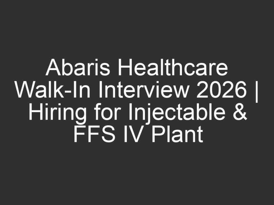 All Jobs, All over India Jobs, Multi National company Jobs21 hours agoAbaris Healthcare Walk-In Interview 2026 | Hiring for Injectable & FFS IV Plant