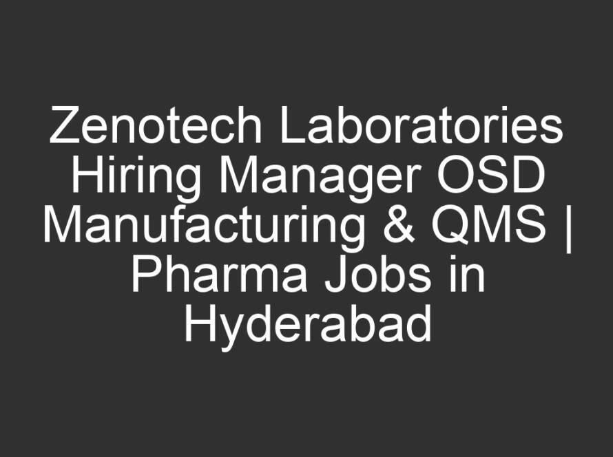 All Jobs, All over India Jobs, Multi National company JobsMarch 17, 2026Zenotech Laboratories Hiring Manager OSD Manufacturing & QMS | Pharma Jobs in Hyderabad