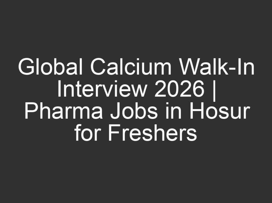 All Jobs, All over India Jobs, Multi National company JobsMarch 17, 2026Global Calcium Walk-In Interview 2026 | Pharma Jobs in Hosur for Freshers