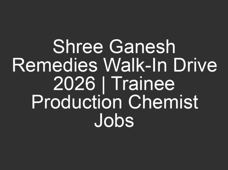 All Jobs, All over India Jobs, Multi National company JobsMarch 17, 2026Shree Ganesh Remedies Walk-In Drive 2026 | Trainee Production Chemist Jobs