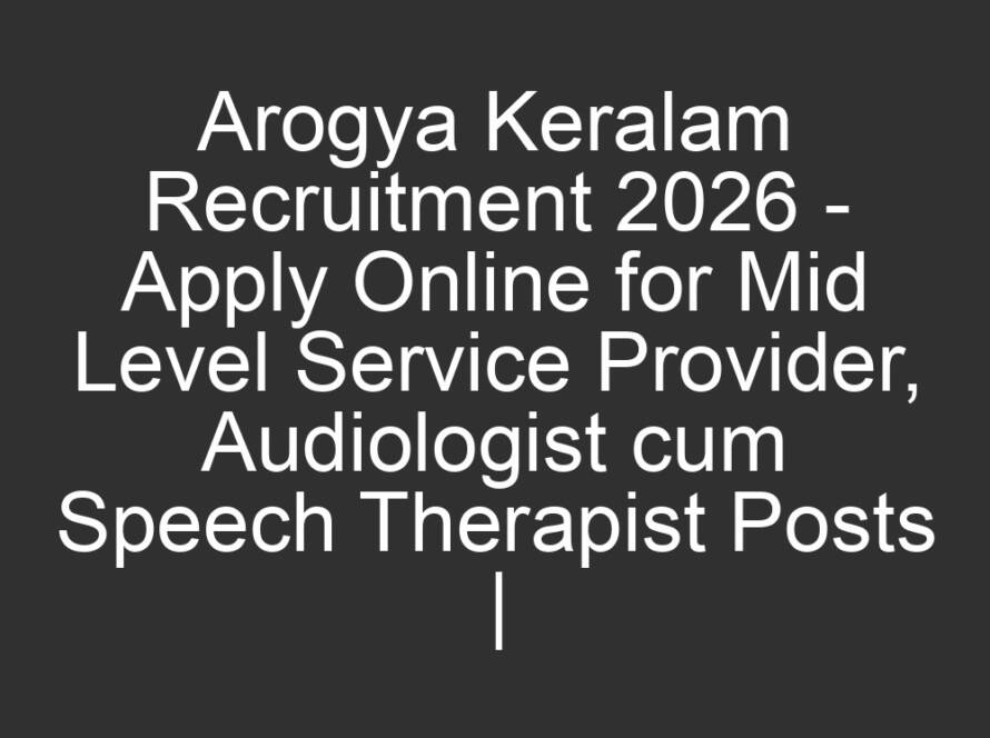 All Jobs, Kerala Jobs5 days agoArogya Keralam Recruitment 2026 – Apply Online for Mid Level Service Provider, Audiologist cum Speech Therapist Posts |