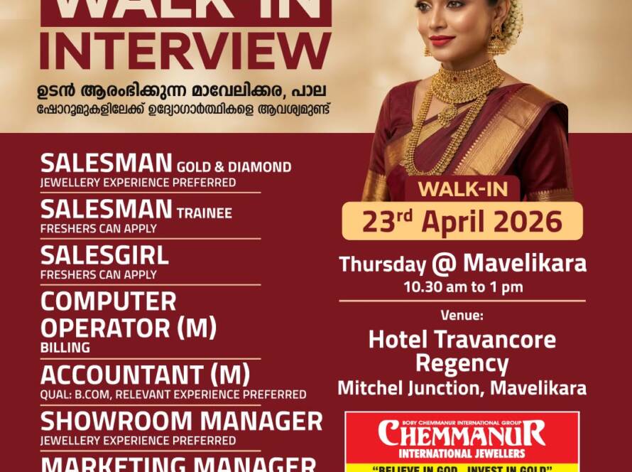 All JobsApril 9, 2026Multiple Job Openings – Sales, Billing, Helper, Customer Care – Irinjalakuda, Thrissur District- Marvel Agencies, Irinjalakuda