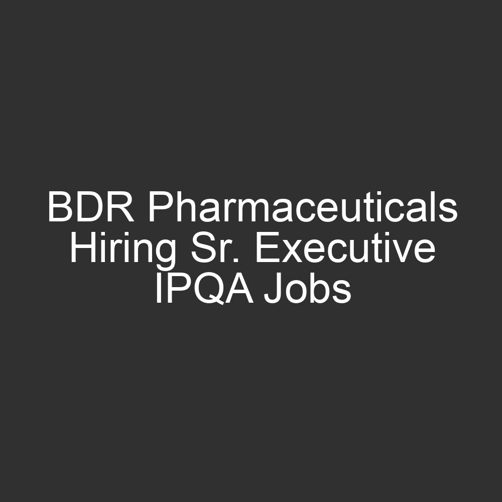 BDR Pharmaceuticals Sr. Executive IPQA Recruitment 2026