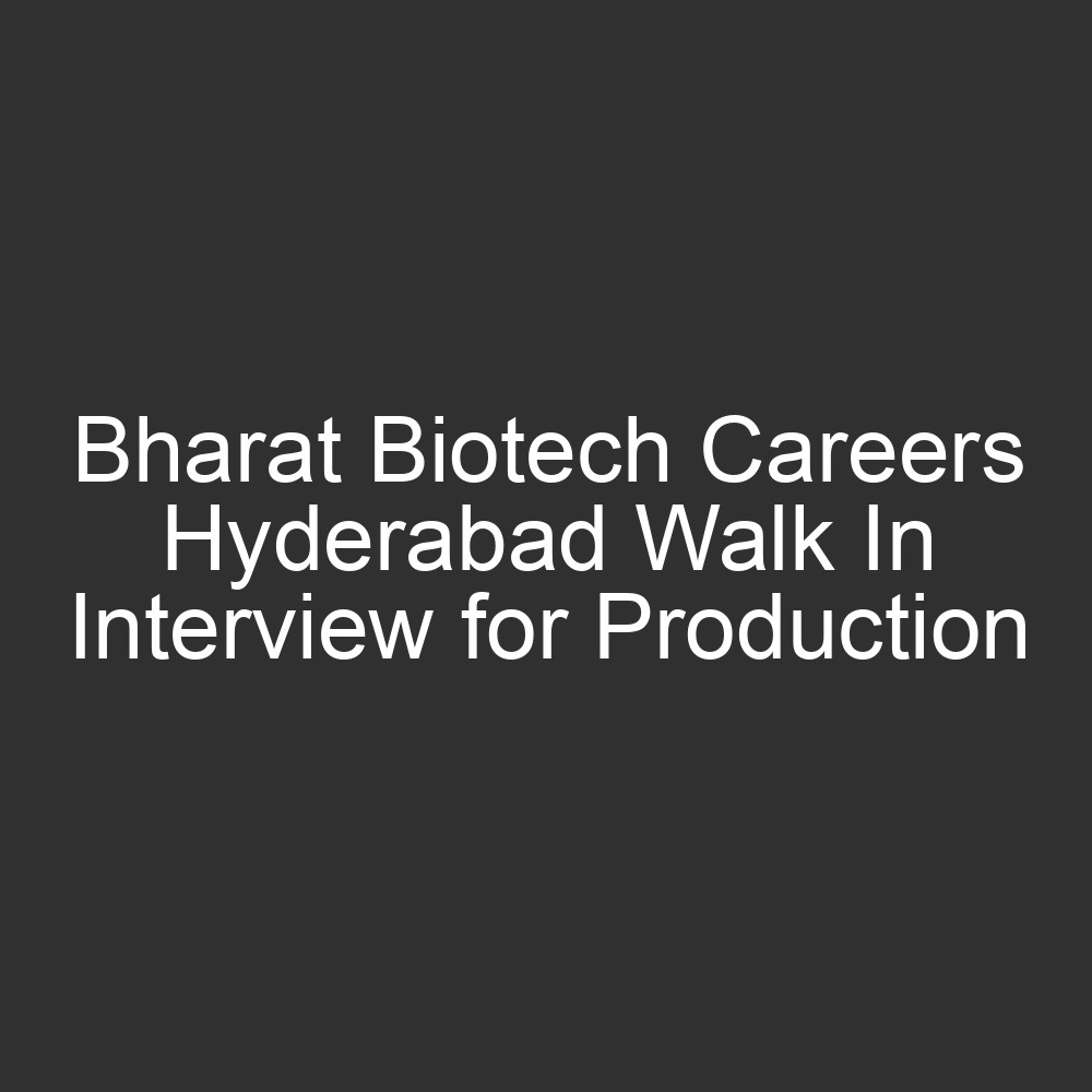 | Bharat Biotech Walk-In Interview for Production Jobs in Hyderabad. |