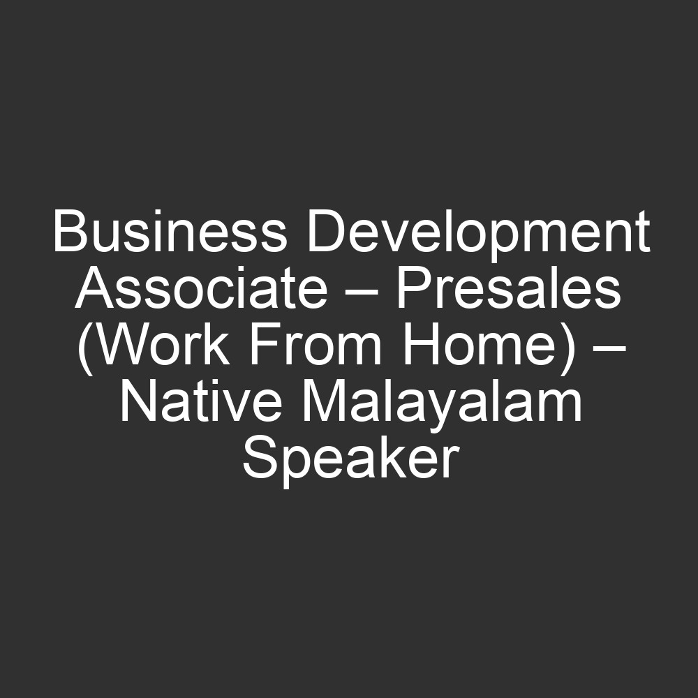 Business Development Associate – Presales (Work From Home) – Native Malayalam Speaker
