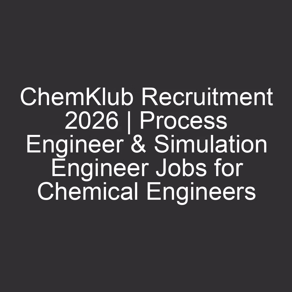 ChemKlub Recruitment 2026 | Process Engineer Trainee & Simulation Engineer Jobs for Chemical Engineers