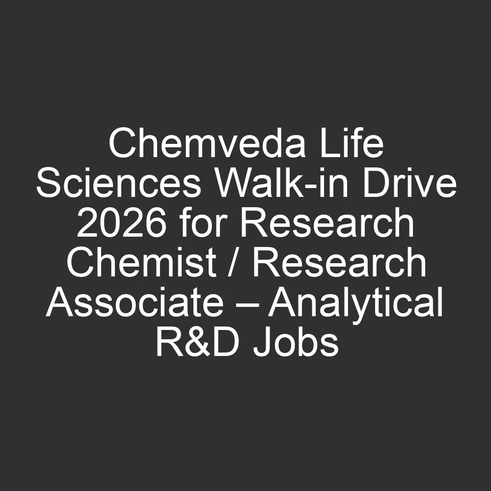 Chemveda Life Sciences India Pvt Ltd has announced a Walk-in Drive for Research Chemist / Research Associate roles in the Analytical R&D department. This is an excellent opportunity for M.Sc Organic Chemistry / Analytical Chemistry candidates with 1–4 years of experience in HPLC method development to work in a reputed pharmaceutical research organization based in Hyderabad. Candidates looking for high-growth pharmaceutical R&D jobs, analytical chemistry careers, and HPLC research roles should not miss this opportunity.