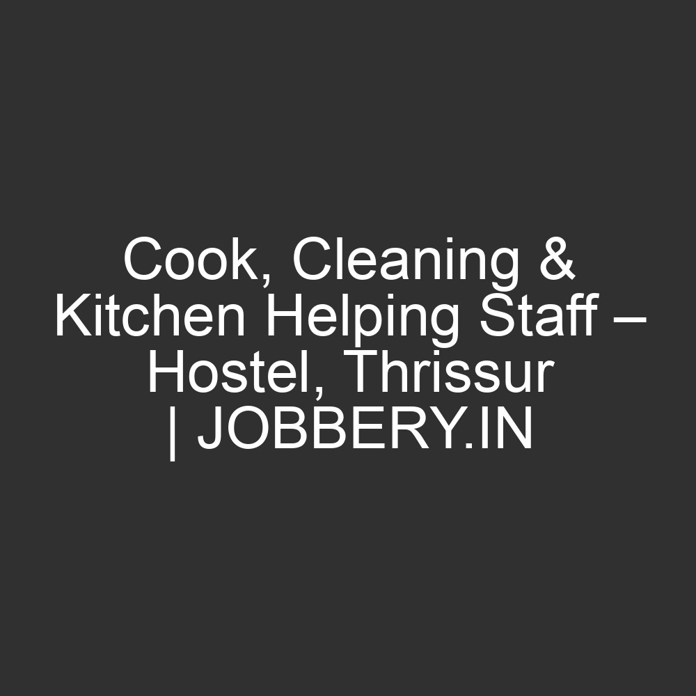 Keywords: Hostel cook job Thrissur, Kitchen helper, Cleaning staff hostel, Accommodation provided job, Food provided job, Thrissur hostel jobs, Cook vacancy Thrissur, Residential job Thrissur, JOBBERY