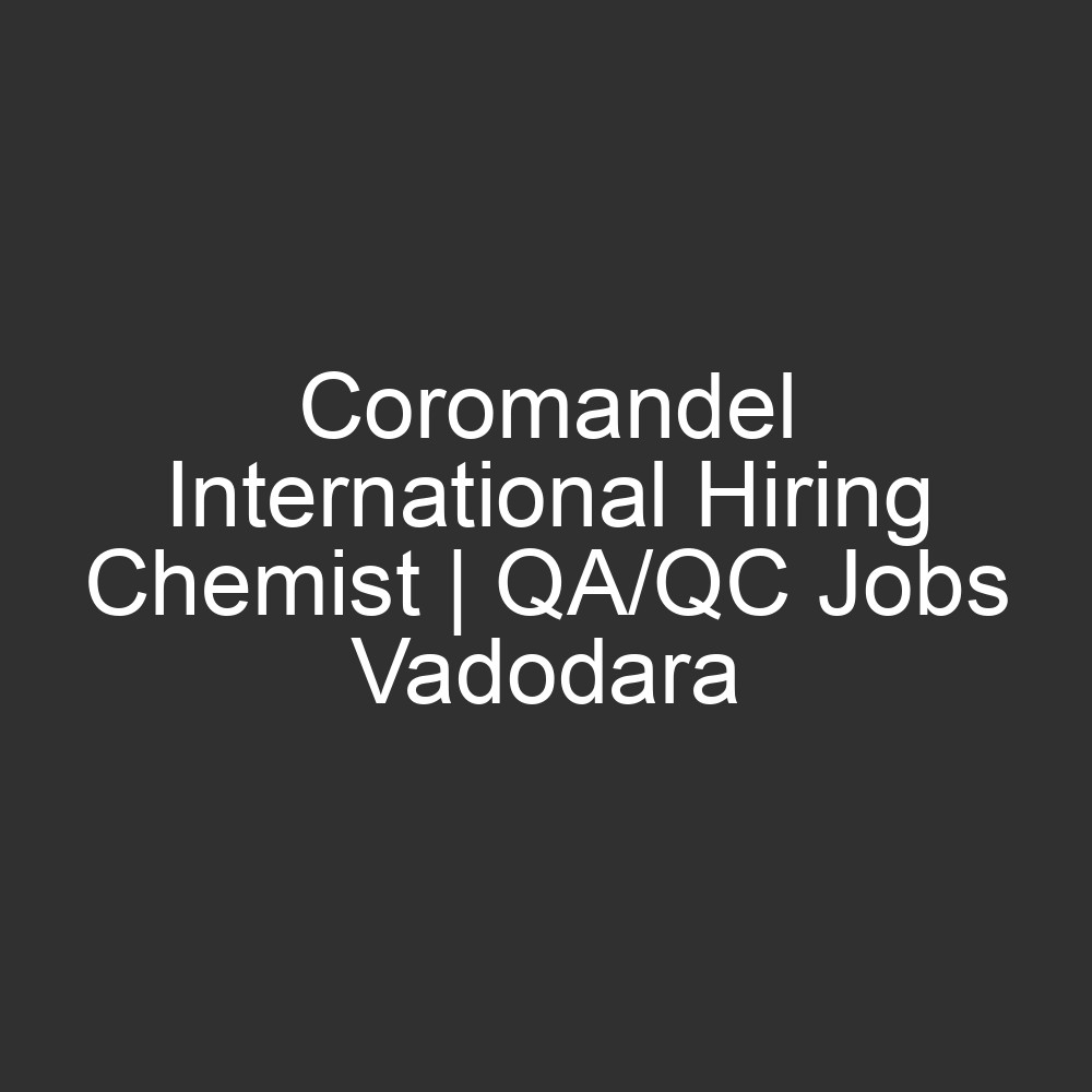 | Coromandel International Limited Chemist Hiring in Vadodara |