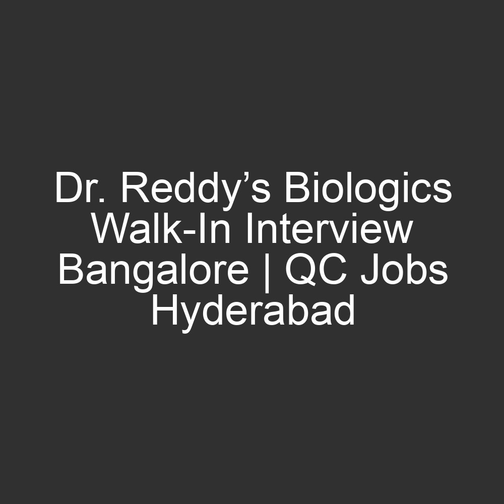 Dr. Reddy’s Laboratories is a global pharmaceutical leader dedicated to providing affordable and innovative medicines. Their Biologics division is hosting a major Career Expo to hire talented Quality Control professionals. Joining Dr. Reddy’s means being part of a team that works towards “Good Health Can’t Wait,” offering a dynamic environment for career growth in the biologics and biosimilar sectors.