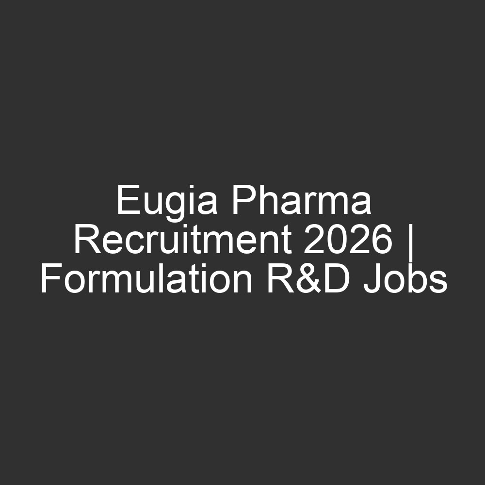 | Career Opening for Formulation R&D – Complex Injectables at Eugia Pharma Research Centre. |