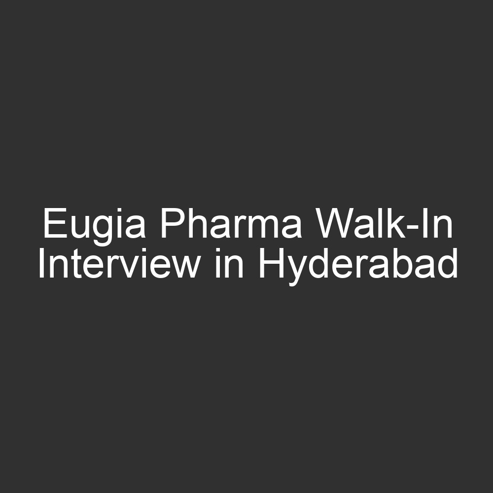 Eugia Pharma Specialities Limited, a specialist in advanced sterile manufacturing, is hosting a walk-in interview for its Pashamylaram (Sangareddy) facility. They are hiring for QA, Production, and Engineering departments. This is a prime opportunity to join a high-growth pharmaceutical company in the Hyderabad region.