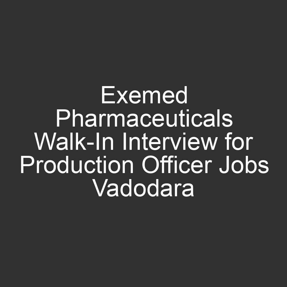 Exemed Pharmaceuticals Walk-In Interview for Production Officer Jobs