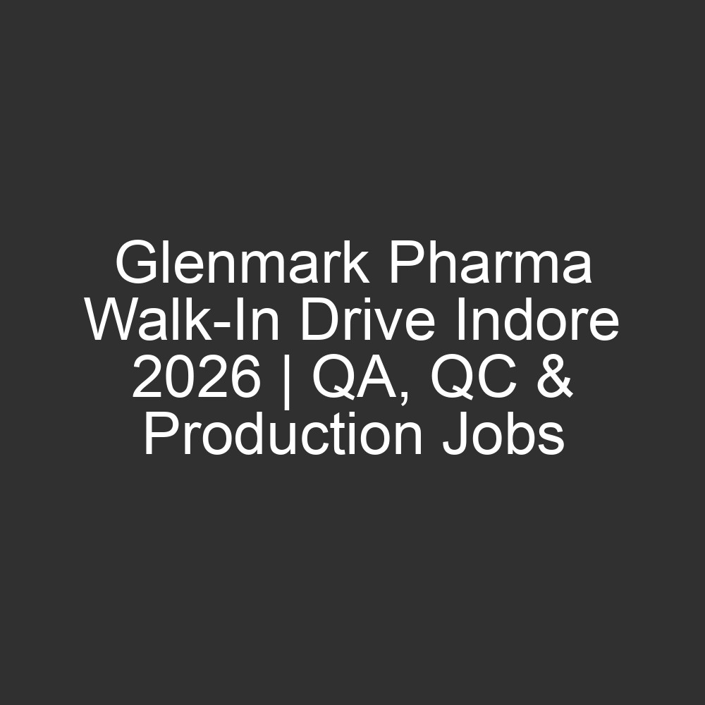 | Glenmark Pharma Walk-In Interview Indore April 2026 |