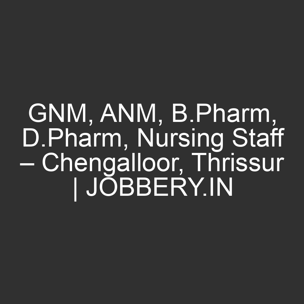 Keywords: GNM job Thrissur, ANM vacancy Chengalloor, B.Pharm job Thrissur, D.Pharm vacancy, Nursing staff required, Medical centre jobs Thrissur, Santhi Nagar job, Healthcare jobs Thrissur, Nurse vacancy Kerala, JOBBERY