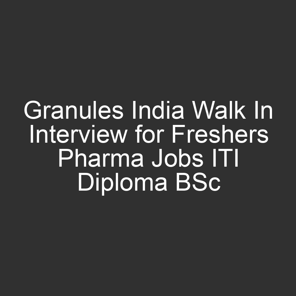 Granules India is hiring freshers for Production and Packing departments at its Shamirpet location. This is a great opportunity for ITI, Diploma, and B.Sc candidates to start a career in the pharmaceutical industry. Granules is a globally recognized pharma company known for quality manufacturing and strong growth. Walk-in interviews are scheduled for interested candidates.