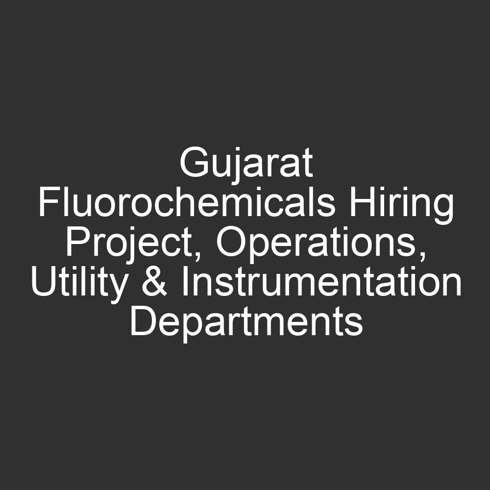 | Gujarat Fluorochemicals Hiring Project, Operations, Utility & Instrumentation Departments |