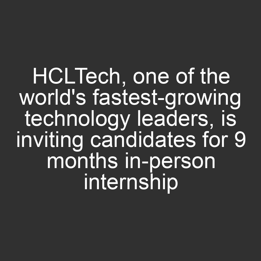 HCLTech, one of the world’s fastest-growing technology leaders, is inviting candidates for 9 months in-person internship.