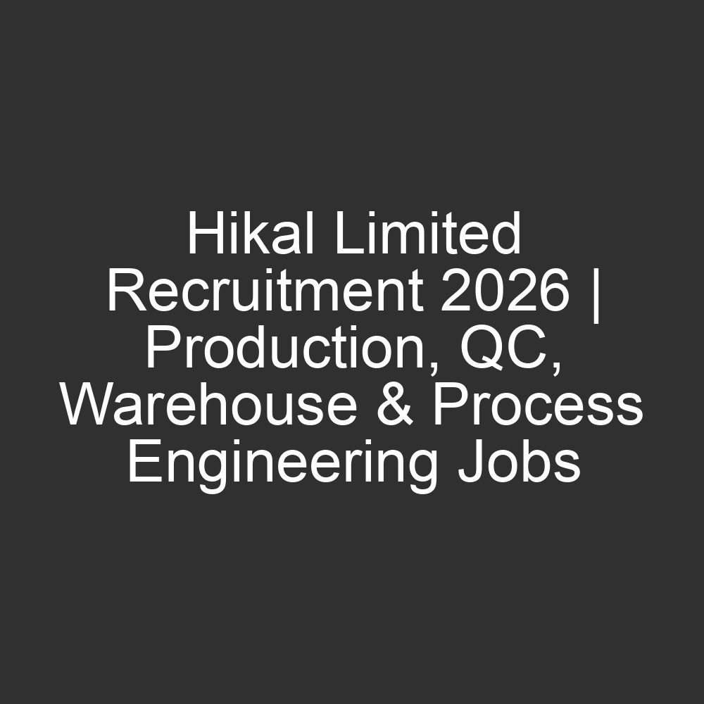 Hikal Limited Recruitment 2026