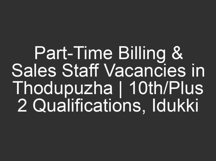 All Jobs, Idukki Jobs, Kerala JobsMarch 13, 2026Part-Time Billing & Sales Staff Vacancies in Thodupuzha | 10th/Plus 2 Qualifications, Idukki