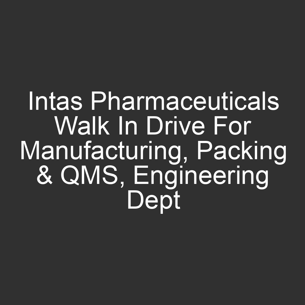| Intas Pharmaceuticals Walk In Drive For Manufacturing, Packing & QMS, Engineering Dept |