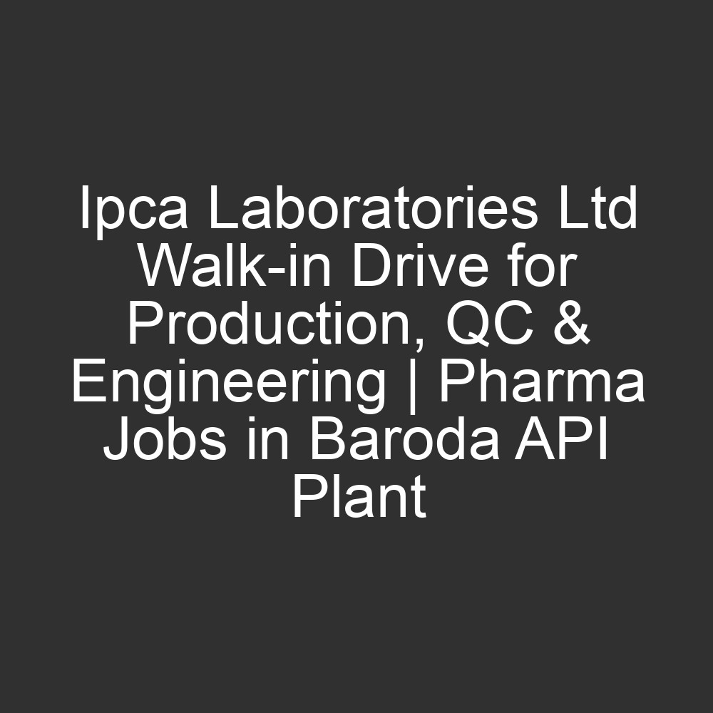 Ipca Laboratories Walk-in Drive 2026 for Production, QC & Engineering – API Plant Jobs