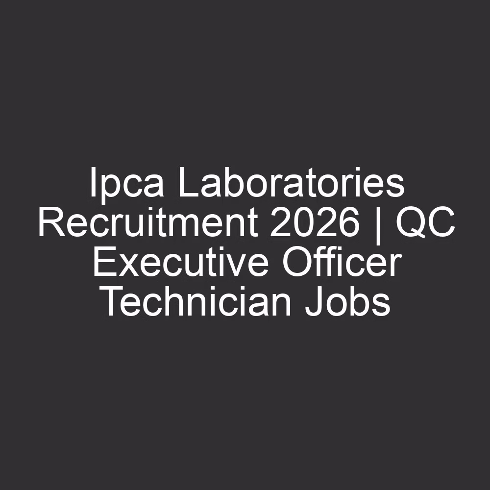 Ipca Laboratories Recruitment 2026 | Quality Control Executive, Officer & Technician Jobs