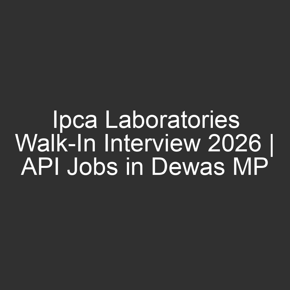 Interview Venue: Ipca Laboratories Limited, Plot No. 16-22, Industrial Area No.1, AB Road, Dewas (M.P.)