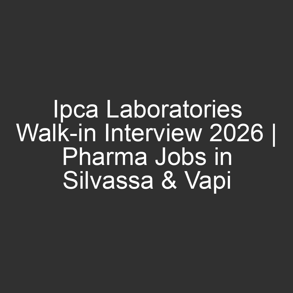 Ipca Laboratories Walk-in Interview 2026 | Pharma Jobs in Silvassa (Dadra & Nagar Haveli)