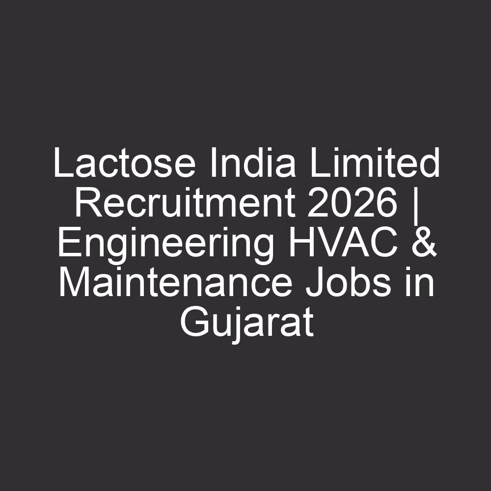Lactose India Limited Recruitment 2026 | Engineering (HVAC & Maintenance) Pharma Jobs in Gujarat