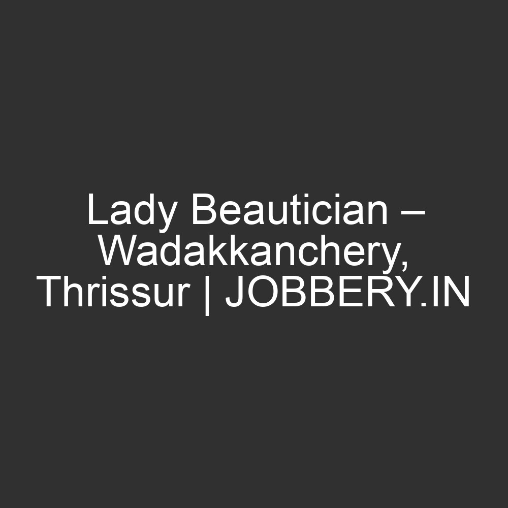 Keywords: Lady beautician Wadakkanchery, Beauty parlour job Thrissur, Experienced beautician, Hair and skin services, Unisex beauty lounge, Thrissur beauty jobs, Wadakkanchery jobs, JOBBERY