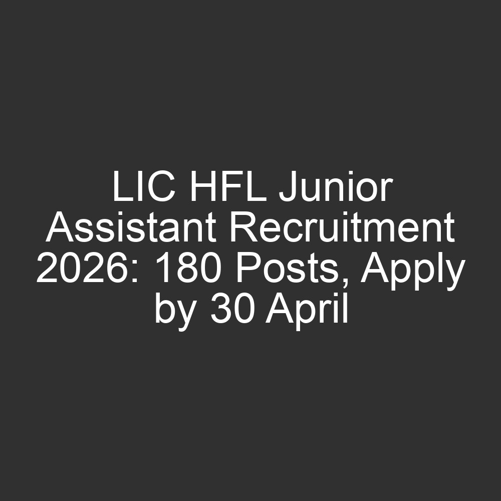 LIC HFL Junior Assistant Recruitment 2026: 180 Posts, Apply by 30 April