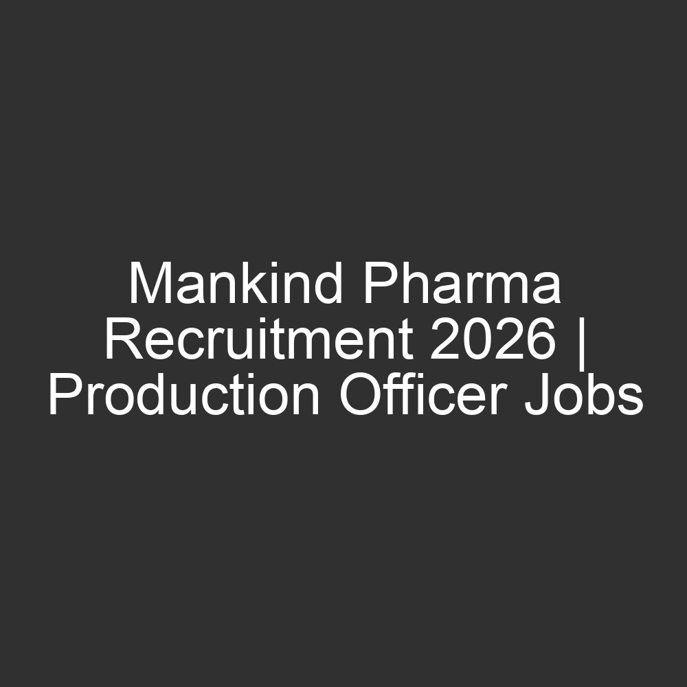 SEO Title: Mankind Pharma Recruitment 2026 | Production Officer Jobs in Rajasthan | API Manufacturing Careers
